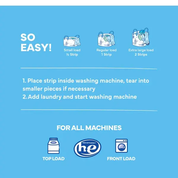Las toallitas de detergente para ropa Tru Earth ofrecen la máxima simplicidad . Cada toallita contiene la cantidad perfecta de detergente para su carga, todo en una pequeña toallita premedida. Aptas para todas las lavadoras, incluyendo los modelos de alta eficiencia (HE), estas toallitas funcionan con agua caliente o fría y están empaquetadas en un envase 100 % reciclable.